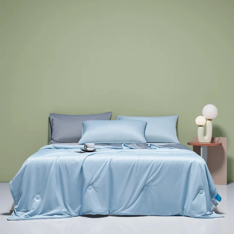 Unsere ArcticDream™ Schlafdecke wurde für warme Nächte entwickelt – mit seidig glattem Eisseidenstoff, der angenehm kühlt, ohne sich kühl anzufühlen.